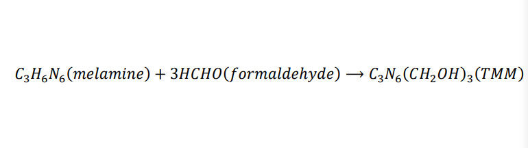 트리메틸올 멜라민(TMM), 하미놀 203은 주로 부분적으로 하이드록시메틸화 반응으로 멜라민과 포름알데히드로부터 만들어집니다, 주요 그룹은 하이드록시메틸이고 이미노입니다, 그것이 하미놀 325 327 수지와 같이, 높은 이미노 메틸드 멜라민 수지를 생산하는데 사용될 수 있습니다.