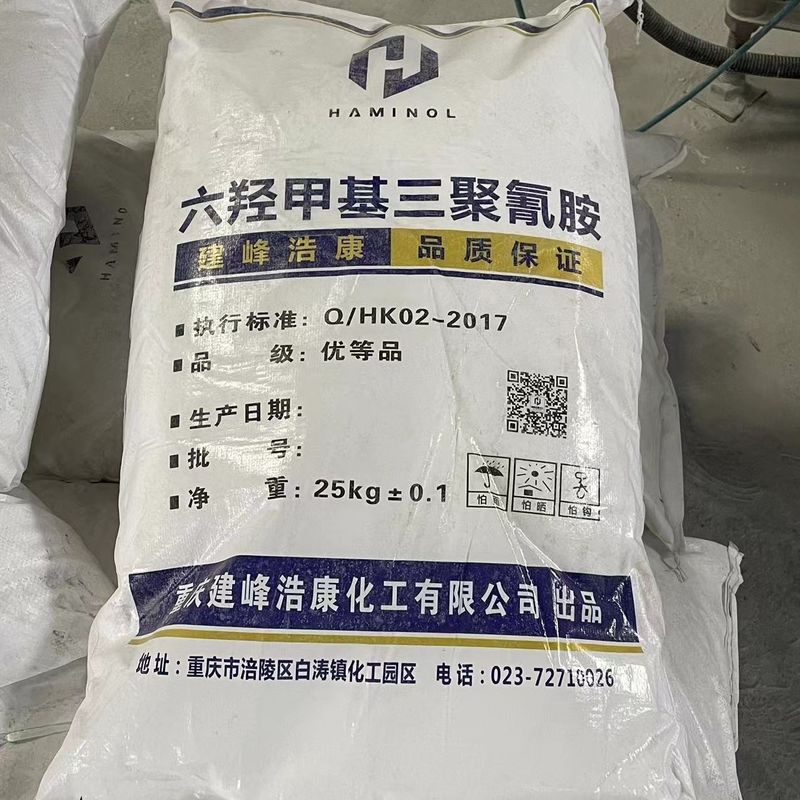 헥사하이드록시메틸 멜라민 수지류는 또한 단지 접찹력, 물, 열과 내약품성이에 관한 아니라, 무색인 것에 관한, 우수한 프로퍼티, 투명한, 단단하고 마멸 저항 경화 생성물과 전기절연 특성을 가집니다. 경화 생성물은 무색이고 투명하고 단단하고 마모 저항자이고, 좋은 전기절연 특성을 가집니다. 그러므로, 멜라민 수지류는 성형 물질, 플라스틱 장식판과 공업용 수지 적층품에서 사용됩니다. 그것은 그러므로 물질을 형성하는 것이 사용되는 것, 플라스틱 장식용 패널, 공업용 수지 적층품, 코팅, 구성 마감, 페이퍼 처리, 접착제와 야외이 의 생산을 위한 합판과 박판 제품입니다. 그것은 물질을 형성하는 것과 같은 적용, 플라스틱 장식용 패널, 공업용 수지 적층품, 코팅, 구성 마감, 페이퍼 처리, 접착제와 야외이 의 생산을 위한 합판과 박판 제품의 넓은 범위에서 그러므로 사용됩니다. 요소 포름알데히드 접착제의 내수성이 의미 심장하게 일 수 있는 요소 포름알데히드 접착제에 대한 헥사하이드록시메틸 멜라민의 추가는 나아졌습니다. 합판 공장의 대부분은 접착제의 생명을 연장하기 위해 증가 비를 증가시키기 위해 파우더를 추가합니다.